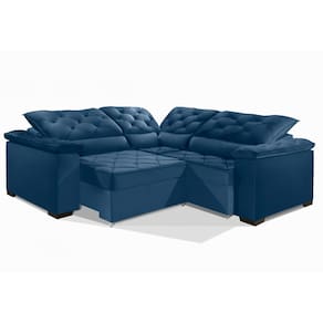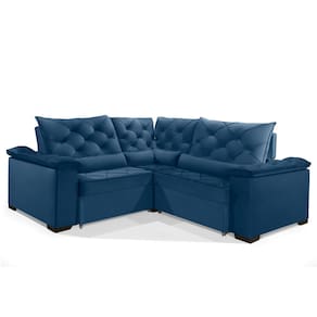 Sofá Retrátil Reclinável BERLIM DE CANTO 2.60 x 2.60 ESTILO ESTOFADOS - França Velusoft COR "AZUL"