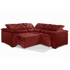 Sofá Retrátil Reclinável BERLIM DE CANTO 2.70 x 2.70 ESTILO ESTOFADOS - França Velusoft COR "VERMELHO"