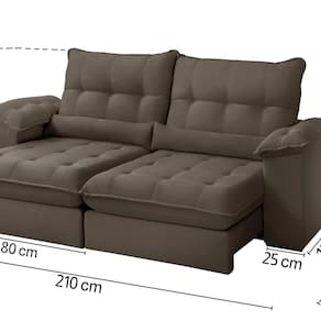 Sofá Retrátil Reclinável Chicago 210 Cm Veludo Marrom