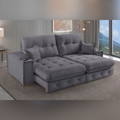 Sofá Retrátil Reclinável com Porta Copos 210cm Istambul Yescasa Cinza