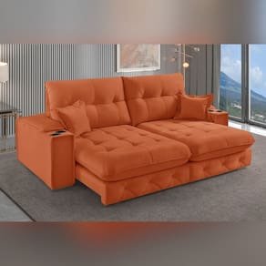 Sofá Retrátil Reclinável com Porta Copos 210cm Istambul Yescasa Terracota - Laranja