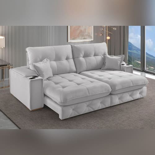 O Sofá Retrátil e Reclinável Istambul combina design e modernidade em um único sofá. Ideal para uma sala de estar ou home cinema , o Istambul proporciona conforto para toda a família. Em diversas medidas ele atende necessidades em que é preciso um sofá mais amplo ou para locais em que é preciso um sofá na medida certa. Além disso, ele é versátil pois se apresenta em uma variedade de cores que se adaptam a diferentes estilos de decoração. O destaque do sofá Istambul esta nas possibilidades que ele apresenta, são 4 opções para atender as mais diversas necessidades: Padrão, Porta Copos, Porta Copos e USB e USB. Garanta já seu sofá Istambul e tenha estilo, modernidade e conforto em sua casa! Acompanha Almofadas extras: 02 Almofada do assento: Fixa Almofada do encosto: Fixa Altura do assento até o chão: 50 cm Altura do Encosto: 76 cm Altura dos Pés: 2 cm Ambiente Principal: Sala de Estar Complexidade da Montagem: Média: pode ser montado por mais de uma pessoa e/ou necessite de maior conhecimento para montagem Cor: Cinza Claro Cor do Produto: Cinza Claro Densidade do Assento: D-26 Densidade do Encosto: Camadas de Densidades Diferentes Enchimento do Assento: Hyper Soft Enchimento do Encosto: Fibra Siliconada Estilo de Braço: Braços Pillow Top Firmeza do Assento: Médio Itens Inclusos: 01 Sofá e Manual de Montagem Manual de Especificação Técnica: https://cdn2.madeiramadeira.com.br/atributo/vicam-estofados/2027335-2041-1717617793838.pdf Manual de Montagem e Instalação: https://cdn2.madeiramadeira.com.br/atributo/vicam-estofados/2027334-2041-17176177891214.pdf Material dos Pés: Pinus Montagem Flex: Não Necessita Montagem: Sim Nível de Conforto: Macio Origem do Produto: Nacional Peso: 84 kg Pet Friendly: Não Porta Copos: Sim Possui Baú: Não Possui Entrada USB: Não Possui Percintas Elásticas: Sim Possui Pés: 08 Possui Rodízio: Sim Profundidade Quando Estendido: 190 cm Recomendações de Uso, Manutenção e Limpeza: Limpar com pano úmido sem uso de produtos químicos Revestimento do Braço: Veludo Rodízio com Trava: Sim Sistema de Montagem: Encaixe Suporta Até (kg): 160 kg Tecido Predominante: Veludo Tipo de Encosto: Regulável Tipo de Mola: Molas Bonnel
