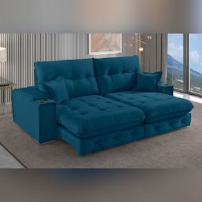 O Sofá Retrátil e Reclinável Istambul combina design e modernidade em um único sofá. Ideal para uma sala de estar ou home cinema , o Istambul proporciona conforto para toda a família. Em diversas medidas ele atende necessidades em que é preciso um sofá mais amplo ou para locais em que é preciso um sofá na medida certa. Além disso, ele é versátil pois se apresenta em uma variedade de cores que se adaptam a diferentes estilos de decoração. O destaque do sofá Istambul esta nas possibilidades que ele apresenta, são 4 opções para atender as mais diversas necessidades: Padrão, Porta Copos, Porta Copos e USB e USB. Garanta já seu sofá Istambul e tenha estilo, modernidade e conforto em sua casa! Acompanha Almofadas extras: 02 Almofada do assento: Fixa Almofada do encosto: Fixa Altura do assento até o chão: 50 cm Altura do Encosto: 76 cm Altura dos Pés: 2 cm Ambiente Principal: Sala de Estar Complexidade da Montagem: Média: pode ser montado por mais de uma pessoa e/ou necessite de maior conhecimento para montagem Cor: Azul Cor do Produto: Azul Densidade do Assento: D-26 Densidade do Encosto: Camadas de Densidades Diferentes Enchimento do Assento: Hyper Soft Enchimento do Encosto: Fibra Siliconada Estilo de Braço: Braços Pillow Top Firmeza do Assento: Médio Itens Inclusos: 01 Sofá e Manual de Montagem Manual de Especificação Técnica: https://cdn2.madeiramadeira.com.br/atributo/vicam-estofados/2027335-2041-1717617793838.pdf Manual de Montagem e Instalação: https://cdn2.madeiramadeira.com.br/atributo/vicam-estofados/2027334-2041-17176177891214.pdf Material dos Pés: Pinus Montagem Flex: Não Necessita Montagem: Sim Nível de Conforto: Macio Origem do Produto: Nacional Peso: 88 kg Pet Friendly: Não Porta Copos: Sim Possui Baú: Não Possui Entrada USB: Não Possui Percintas Elásticas: Sim Possui Pés: 08 Possui Rodízio: Sim Profundidade Quando Estendido: 190 cm Recomendações de Uso, Manutenção e Limpeza: Limpar com pano úmido sem uso de produtos químicos Revestimento do Braço: Veludo Rodízio com Trava: Sim Sistema de Montagem: Encaixe Suporta Até (kg): 160 kg Tecido Predominante: Veludo Tipo de Encosto: Regulável Tipo de Mola: Molas Bonnel