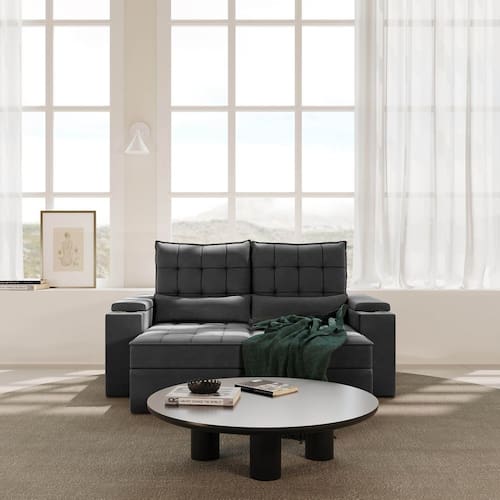 Os estofados retráteis Embaúba Extra combinam linhas econômicas e um design robusto, sem excessos, ideal para uma sala de estar ou home cinema com um estilo moderno e sofisticado, proporcionando conforto para toda a família. Com suas medidas amplas, são ideais para acomodar todos com comodidade. Além disso, apresentam uma ampla variedade de cores para se adaptarem a diferentes estilos de decoração. Os estofados também oferecem opções de cores em tecido de veludo fosco de fácil limpeza com resistência a manchas. O encosto possui uma catraca blindada de 7 estágios de reclinação, preenchida com 100% de fibra siliconada para máximo conforto. Além disso, os sofás possuem porta-copos e cabos USB integrados para uma experiência de entretenimento ainda mais conveniente. A estrutura, feita de eucalipto reflorestado, garante excelente resistência e durabilidade.