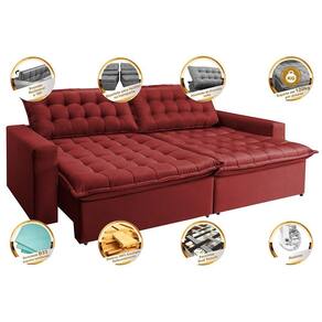Sofá Retrátil Reclinável e Cama 2,35m Cama inBox Flex. Suede - Vermelho