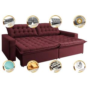 *Assentos: Feitos com espuma D33, Molas Bonnel, Fibra Siliconada, Percintas Dual Securit (Percintas Italianas Elásticas e Pneumáticas) e Madeira de Eucalipto, sua estrutura foi desenvolvida para dar mais qualidade e praticidade ao seu dia a dia. Seus assentos são retráteis, dando mais modernidade a sua sala, além de ser uma excelente opção para passar horas deitado/sentado sem dores e/ou desconfortos.