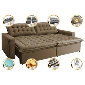 *Assentos: Feitos com espuma D33, Molas Bonnel, Fibra Siliconada, Percintas Dual Securit (Percintas Italianas Elásticas e Pneumáticas) e Madeira de Eucalipto, sua estrutura foi desenvolvida para dar mais qualidade e praticidade ao seu dia a dia. Seus assentos são retráteis, dando mais modernidade a sua sala, além de ser uma excelente opção para passar horas deitado/sentado sem dores e/ou desconfortos.