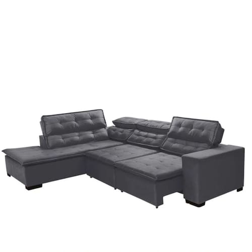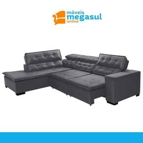 Sofá Retrátil Reclinável e Chaise 5 Lugares 280cm Super Confortável Sttilo Mega Sul - Grafite