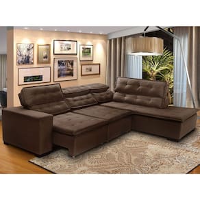 Sofá Retrátil Reclinável e Chaise 5 Lugares 280cm Super Confortável Sttilo Mega Sul - Marrom Chocolate