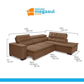 Renove com muita ousadia e elegância o seu ambiente preferido de descanso e descontração, com o Sofá 5 Lugares de Canto Retrátil e Reclinável Sttilo com Chaise 2,80m, fabricado pela MegaSul, qual possui encosto reclinável, com catraca silenciosa 5 estágios, almofadas fixas de fibra siliconada, ideal para você aproveitar o seu momento de assistir seus programas de TV preferidos, ou reunir a família junto! Valorize e complete o seu lar com muita beleza e funcionalidade! Aproveite e experimente o novo!  O tecido veludo é de alto padrão, depois da seda, é um dos tecidos mais nobres. Possui textura ricamente macia e suave, associado a classe e elegância com a proposta de sensação ao toque mais sensível e encantador. Além de trazer sofisticação para o produto, que agregam na decoração do seu ambiente, com o ar de sofisticação, mais decorativo. Estrutura do Sofá 5 Lugares de Canto Retrátil e Reclinável Sttilo é eucalipto tratado de reflorestamento ecologicamente correto. O assento é retrátil, pillow, espuma D-28, revestido com manta fibra siliconada, molas individuais Bonnel, Corrediça metálica, Percinta elástica.   Dados Técnicos do Sofá 5 Lugares STTILO: Largura: 2,80mAltura: 95cmTamano da Chaise: 2,20mProfundidade do Assento : 93mProfundidade do Assento aberto: 1,33mChaise lado : Direito (Sentado)COR : BEGE 526Tecido/Revestimento: Veludo   Informações importantes: -As cores do produto podem variar de acordo com o monitor, a iluminação do ambiente ou sua percepção visual, leve isso em consideração ao escolher a cor. -Garantia total de 90 dias para defeitos de fabricação; -Limpeza ou Manutenção: Utilizar escova com cerdas macias. NÃO utilizar produtos Abrasivos. -Montagem e instalação por conta do comprador; -As imagens ambientadas são meramente ilustrativas e podem apresentar itens que não compõe o produto;