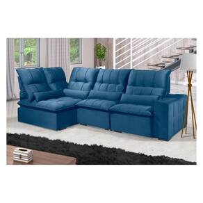 Sofá Retrátil Reclinável ELLOA DE CANTO COM CHAISE 3.65 x 1.80m ESTILO ESTOFADOS - França Velusoft COR "AZUL"