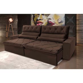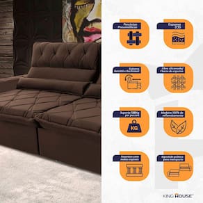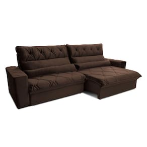 Sofá Retrátil Reclinável França 2,30m Suede Velut Marrom c/ Molas no Assento - King House