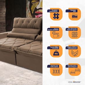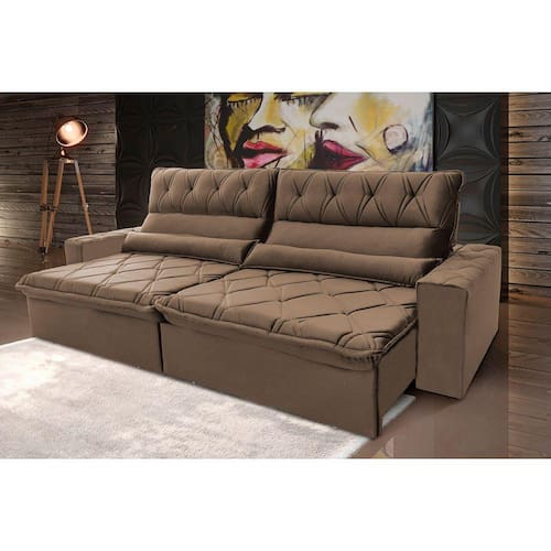 Ele possui encosto reclinável em cinco posições, proporcionando-lhe mais conforto na hora do descanso. Não para por aí: seu assento retrátil conta com espuma D35 e molas espirais, transformando seu sofá em uma verdadeira cama para assistir seu filme preferido.