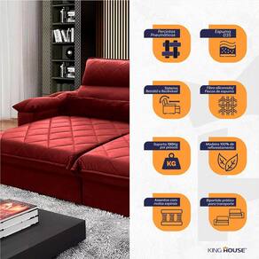 Sofá Retrátil Reclinável Grécia 2,10m Suede Velut Vermelho c/ Molas no Assento - King House