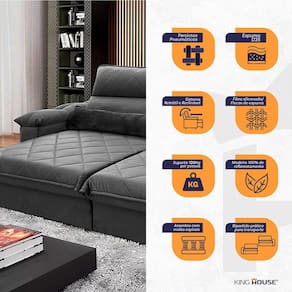 Ele possui encosto reclinável em cinco posições, proporcionando-lhe mais conforto na hora do descanso. Não para por aí: seu assento retrátil conta com espuma D35 e molas espirais, transformando seu sofá em uma verdadeira cama para assistir seu filme preferido.
