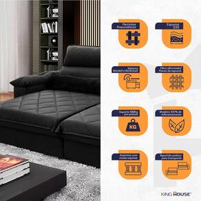 Ele possui encosto reclinável em cinco posições, proporcionando-lhe mais conforto na hora do descanso. Não para por aí: seu assento retrátil conta com espuma D35 e molas espirais, transformando seu sofá em uma verdadeira cama para assistir seu filme preferido.