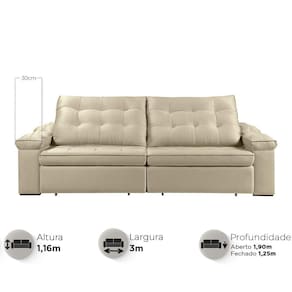 - 1x Sofá Retrátil Reclinável Houston -3m -CSR Studio 1x Manual