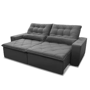 Sofá Retrátil Reclinável Islândia 2,30m Suede Velut Cinza c/ Molas no Assento - King House - Grafite