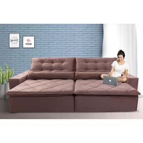 Sofá Retrátil/Reclinável Islândia 2,30 m Suede Veludo Tabaco c/ Molas no Assento - King Kong
