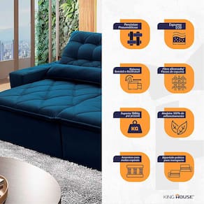 Ele possui encosto reclinável em cinco posições, proporcionando-lhe mais conforto na hora do descanso. Não para por aí: seu assento retrátil conta com espuma D35 e molas espirais, transformando seu sofá em uma verdadeira cama para assistir seu filme preferido.