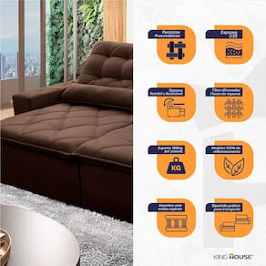 Ele possui encosto reclinável em cinco posições, proporcionando-lhe mais conforto na hora do descanso. Não para por aí: seu assento retrátil conta com espuma D35 e molas espirais, transformando seu sofá em uma verdadeira cama para assistir seu filme preferido.