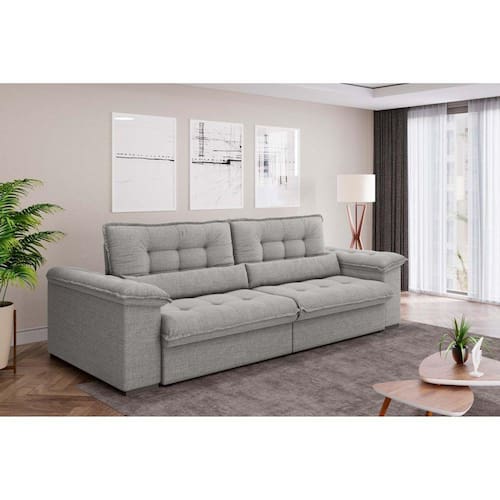 Se você está procurando um sofá robusto, elegante e confortável. Aqui está nosso sofá Majestoso de 290 metros, revestido em tecido de linho que une a qualidade e beleza nos detalhes. Suas principais características são maciez, durabilidade, facilidade de limpeza. Ele é um dos tecidos mais agradáveis para a combinação de elegância com conforto e refrescância. Indicado para sala de estar, tv , quarto.. Esse sofá é perfeito para maratonar aquela serie favorita, um bom descanso após um dia longo de trabalho... Acompanha Almofadas extras: 02 Almofada do assento: Fixa Almofada do encosto: Fixa Altura do assento até o chão: 48 Altura do Encosto: 50 Altura dos Pés: 5 Ambiente Principal: Sala de Estar Complexidade da Montagem: Baixa: pode ser montado por uma pessoa sozinha Cor: Grafite Cor do Produto: Grafite Densidade do Assento: D-28 Densidade do Encosto: D-26 Enchimento do Assento: Espuma Enchimento do Encosto: Espuma Estilo de Braço: Braços Largos Firmeza do Assento: Médio Itens Inclusos: 1 Sofá Material dos Pés: Plástico Resistente Necessita Montagem: Sim Origem do Produto: Nacional Peso: 13.4 Pet Friendly: Não Possui Percintas Elásticas: Sim Possui Pés: 08 Possui Rodízio: Sim Profundidade Quando Estendido: 180 Recomendações de Uso, Manutenção e Limpeza: A higienização do tecido deve ser realizada apenas com detergente neutro e pano úmido e sem necessidade de esforço. Evite aplicar outros produtos químicos, pois eles podem danificar o seu produto. • Mantenha sempre uma frequência de limpeza para evitar manchas e danos. • Nos revestimentos com tonalidades claras, evite contato com tecidos que soltem tinta. Revestimento do Braço: Madeira Eucalipto, fibra siliconizada, Tecido Linho Rodízio com Trava: Sim Sistema de Montagem: encaixe Suporta Até (kg): 120 Tecido Predominante: Linho Tipo de Encosto: Regulável Tipo de Mola: Não Possui Ean: 7909903409978