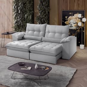 Sofá Retrátil Reclinável Molas Ensacadas Chicago 230 Cm Veludo Cinza - Prata