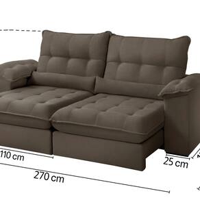 Sofá Retrátil Reclinável Molas Ensacadas Chicago 270 Cm Marrom