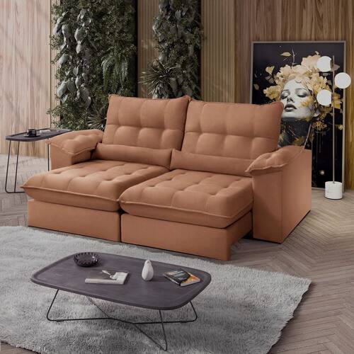 Sofá Retrátil Reclinável Molas Ensacadas Chicago 290 Cm Marrom