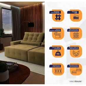 Ele possui encosto reclinável em cinco posições, proporcionando-lhe mais conforto na hora do descanso. Não para por aí: seu assento retrátil conta com espuma D35 e molas espirais, transformando seu sofá em uma verdadeira cama para assistir seu filme preferido.