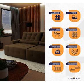 Ele possui encosto reclinável em cinco posições, proporcionando-lhe mais conforto na hora do descanso. Não para por aí: seu assento retrátil conta com espuma D35 e molas espirais, transformando seu sofá em uma verdadeira cama para assistir seu filme preferido.