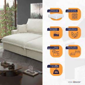 Ele possui encosto reclinável em cinco posições, proporcionando-lhe mais conforto na hora do descanso. Não para por aí: seu assento retrátil conta com espuma D33 e molas ensacadas, transformando seu sofá em uma verdadeira cama para assistir seu filme preferido.