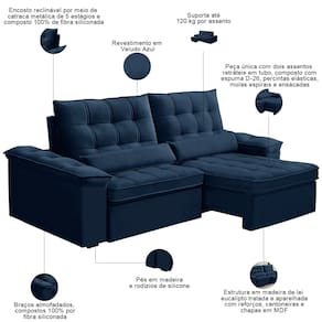 Ideal para quem busca sofá confortável, o Sofá Retrátil Reclinável Maresi 210cm é a opção certa.