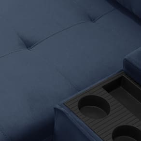 Peso: 60 Kg | Material do estofamento: Veludo | Estilo: Moderno | Profundidade: 98 cm | Orientação do Sofá: Frontal | Altura: 110 cm | Largura: 210 cm | Fabricante: Lyam Decor | Unidades por kit: 1 | Cor: Azul | Formato do sofá: Linear | Desenho do tecido: Liso | Tipo de produto: Sofá Retrátil Reclinável | Peso máximo suportado: 240 kg | Linha: Sala de Estar | Material de enchimento do encosto: Fibra Siliconada | Requer montagem: Não | Mecanismo de abertura do produto: Manual, rodízios de silicone | Densidade da espuma do assento: D-26 | Cor dos pés: Marrom | Quantidade de Caixas de embalagem: 1