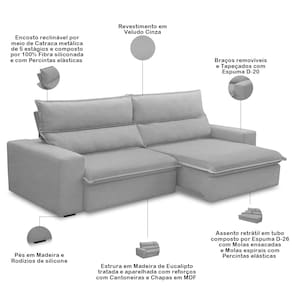 Revestimento em tecido Veludo de alta qualidade na tonalidade Cinza.