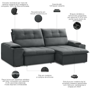 Transforme seu espaço com o Sofá Retrátil Reclinável Zayn 210cm, da Lyam Decor, conforto inteligente para todos os ambientes!