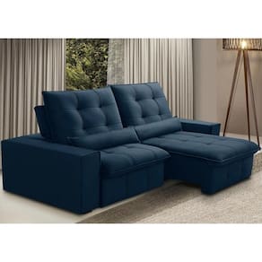 Unidades por kit: 1 | Cor: Azul | Requer montagem: Não | Altura: 115 cm | Tipo de produto: Sofá Retrátil Reclinável | Peso máximo suportado: 240 kg | Peso: 80 Kg | Orientação do Sofá: Frontal | Mecanismo de abertura do produto: Manual, rodízios de silicone | Material do estofamento: Veludo | Material de enchimento do encosto: Fibra Siliconada | Linha: Sala de Estar | Formato do sofá: Linear | Estilo: Moderno | Desenho do tecido: Liso | Fabricante: Lyam Decor | Largura: 230 cm | Densidade da espuma do assento: D-26 | Cor dos pés: Marrom | Profundidade: 121 cm | Quantidade de Caixas de embalagem: 1