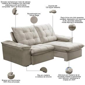 Sofá Retrátil Reclinável Para Sala 3 Lugares 230cm Nijma F04 Veludo Bege - Lyam Decor