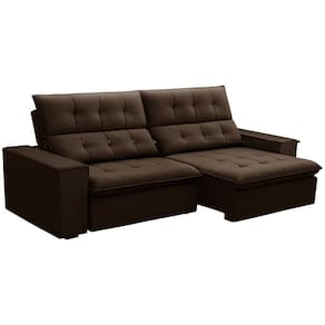 Cor: Marrom | Tipo de produto: Sofá Retrátil Reclinável | Peso máximo suportado: 240 kg | Material do estofamento: Veludo | Estilo: Moderno | Desenho do tecido: Liso | Largura: 250 cm | Profundidade: 98 cm | Requer montagem: Não | Orientação do Sofá: Frontal | Altura: 110 cm | Material de enchimento do encosto: Fibra Siliconada | Fabricante: Lyam Decor | Quantidade de Caixas de embalagem: 1 | Mecanismo de abertura do produto: Manual, rodízios de silicone | Unidades por kit: 1 | Cor dos pés: Marrom | Densidade da espuma do assento: D-26 | Peso: 80 Kg | Formato do sofá: Linear | Linha: Sala de Estar