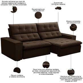 Sofá Retrátil Reclinável Para Sala 3 Lugares 250cm Vincent F04 Veludo Marrom - Lyam Decor