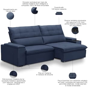Este modelo retrátil reclinável foi pensado para quem valoriza cada momento de descanso, combinando tecnologia e conforto em um design que transforma qualquer ambiente. A estrutura em madeira e rodízios de silicone garante estabilidade e movimento suave, enquanto o encosto reclinável com catraca de 5 estágios permite encontrar a posição ideal para relaxar. A fibra siliconada oferece suporte ergonômico, e o tecido premium convida ao toque, tornando cada momento mais especial. O diferencial desse sofá 4 lugares está nos braços retráteis com porta-copos e porta-objetos, oferecendo praticidade sua rotina sem perder o estilo.