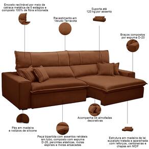 Na vida moderna, a sala de estar é o palco dos melhores momentos - desde sessões de cinema em família até animados encontros com amigos. E para esses momentos especiais, o Sofá Retrátil Reclinável Aisha 290cm chega como a escolha perfeita: espaçoso, versátil e incrivelmente confortável, ele foi pensado para transformar seu lar no verdadeiro refúgio do aconchego.