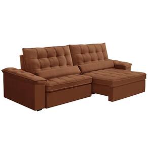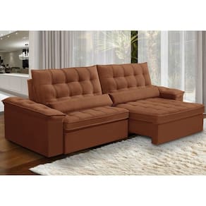 Unidades por kit: 1 | Cor: Terracota | Requer montagem: Não | Tipo de produto: Sofá Retrátil Reclinável | Peso máximo suportado: 240 kg | Peso: 110 kg | Orientação do Sofá: Frontal | Mecanismo de abertura do produto: Manual, rodízios de silicone | Material do estofamento: Veludo | Material de enchimento do encosto: Fibra Siliconada | Linha: Sala de Estar | Estilo: Moderno | Formato do sofá: Linear | Desenho do tecido: Liso | Densidade da espuma do assento: D-26 | Cor dos pés: Marrom | Fabricante: Lyam Decor | Profundidade: 121 cm | Altura: 110 cm | Largura: 290 cm | Quantidade de Caixas de embalagem: 2