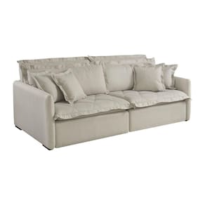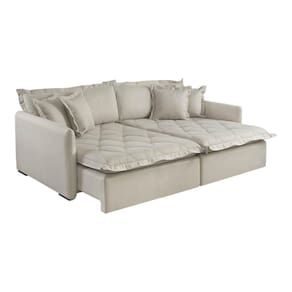 Produto feito com madeira de reflorestamento e revestido com tecido em linho. No assento, além da espuma D28, contamos com as molas de aço que auxíliam na sustentação e retorno do nível, aumentando o conforto e durabilidade do produto. O encosto possui fibra de silicone. Possui ainda rodinhas de silicone e pés de madeira maciça. Acompanha Almofadas extras: Não Almofada do assento: Removível Almofada do encosto: Removível Altura do assento até o chão: 50 cm Altura do Encosto: 45 cm Ambiente Principal: Sala de Estar Complexidade da Montagem: Baixa: pode ser montado por uma pessoa sozinha Cor: Bege Cor do Produto: Bege Densidade do Assento: D-28 Densidade do Encosto: Camadas de Densidades Diferentes Enchimento do Assento: Espuma Enchimento do Encosto: Fibra Siliconada Estilo de Braço: Braços Redondos Firmeza do Assento: Macio Itens Inclusos: 1 Sofá, Manual de Montagem Linha ou Coleção: Bardot Manual de Montagem e Instalação: https://product-hub-prd.madeiramadeira.com.br/873859/documents/b2b4a7f1-0fe0-4a0a-9d51-fe1ccdac15f74390estofadobardotestofart.pdf Material dos Pés: Madeira Montagem Flex: Não Necessita Montagem: Sim Origem do Produto: Nacional Peso: 90 kg Pet Friendly: Não Possui Entrada USB: Não Possui Percintas Elásticas: Sim Possui Pés: 08 Possui Rodízio: Não Profundidade Quando Estendido: 154 cm Recomendações de Uso, Manutenção e Limpeza: Não expor ao sol ou fonte de calor; Não utilizar produtos de limpeza como detergente, álcool, solventes, ou produtos químicos; Para a limpeza, utilizar pano umedecido em água, sabão neutro e escova de cerdas macias, deixando secar a sombra. Em caso de excesso de poeira, usar aspirador de pó; Não provocar tensões desproporcionais no assento do sofá, provocadas pro quedas ou pulos; Evitar contatos com animais; Preservar o produto de objetos aquecidos ou pontiagudos; Mantê-lo em local arejado; Transportar com o máximo de cautela. Sistema de Montagem: Parafusos Suporta Até (kg): 100 kg Tecido Predominante: Linho Tipo de Encosto: Regulável Tipo de Mola: Molas Bonnel Ean: 7909903451335