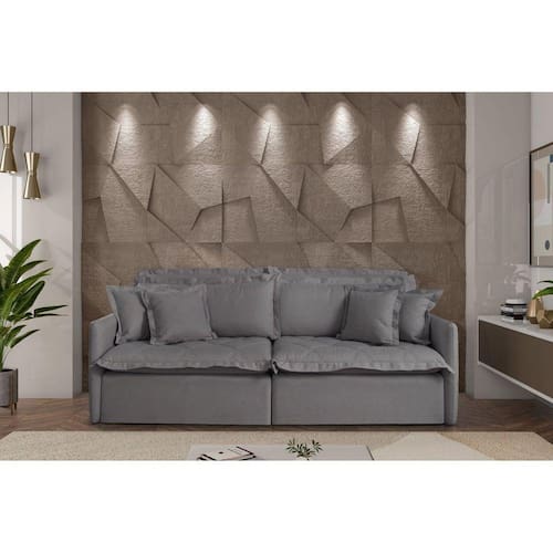 Produto feito com madeira de reflorestamento e revestido com tecido em linho. No assento, além da espuma D28, contamos com as molas de aço que auxíliam na sustentação e retorno do nível, aumentando o conforto e durabilidade do produto. O encosto possui fibra de silicone. Possui ainda rodinhas de silicone e pés de madeira maciça e Kit USB Acompanha Almofadas extras: Não Almofada do assento: Removível Almofada do encosto: Removível Altura do assento até o chão: 50 cm Altura do Encosto: 45 cm Ambiente Principal: Sala de Estar Complexidade da Montagem: Baixa: pode ser montado por uma pessoa sozinha Cor: Grafite Cor do Produto: Grafite Densidade do Assento: D-28 Densidade do Encosto: Camadas de Densidades Diferentes Enchimento do Assento: Espuma Enchimento do Encosto: Fibra Siliconada Estilo de Braço: Braços Redondos Firmeza do Assento: Macio Informações Complementares: Kit USB Itens Inclusos: 1 Sofá, Manual de Montagem Linha ou Coleção: Bardot Manual de Montagem e Instalação: https://product-hub-prd.madeiramadeira.com.br/873905/documents/eb25c17b-ed69-4662-9324-cbd5cad6ad8c4390estofadobardotestofart.pdf Material dos Pés: Madeira Montagem Flex: Não Necessita Montagem: Sim Origem do Produto: Nacional Peso: 108 kg Pet Friendly: Não Possui Entrada USB: Não Possui Percintas Elásticas: Sim Possui Pés: 08 Possui Rodízio: Não Profundidade Quando Estendido: 154 cm Recomendações de Uso, Manutenção e Limpeza: Não expor ao sol ou fonte de calor; Não utilizar produtos de limpeza como detergente, álcool, solventes, ou produtos químicos; Para a limpeza, utilizar pano umedecido em água, sabão neutro e escova de cerdas macias, deixando secar a sombra. Em caso de excesso de poeira, usar aspirador de pó; Não provocar tensões desproporcionais no assento do sofá, provocadas pro quedas ou pulos; Evitar contatos com animais; Preservar o produto de objetos aquecidos ou pontiagudos; Mantê-lo em local arejado; Transportar com o máximo de cautela. Sistema de Montagem: Parafusos Suporta Até (kg): 100 kg Tecido Predominante: Linho Tipo de Encosto: Regulável Tipo de Mola: Molas Bonnel Ean: 7909903451489
