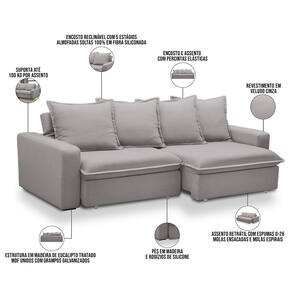 Revestimento em Veludo de qualidade na tonalidade Cinza.