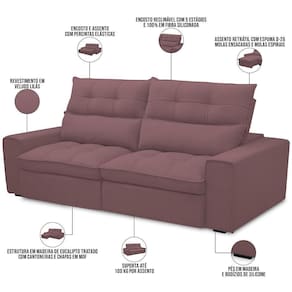SupplierSimpleName: Sofá Retrátil Reclinável Para Sala de Estar Living 210cm Dimas F04 Veludo Lilás - Lyam Decor