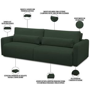 SupplierSimpleName: Sofá Retrátil Reclinável Para Sala de Estar Living 210cm Sevilha F04 Veludo Verde - Lyam Decor
