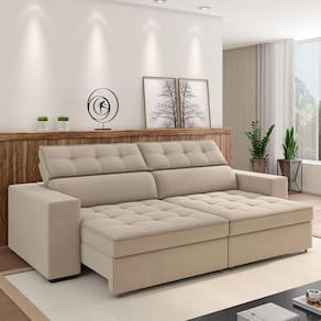 Dono de um visual que promete levar sofisticação e aconchego para a sua casa, o Sofá Retrátil Reclinável Para Sala de Estar Living 246cm Clara, da Lyam Decor, vai transformar os seus dias de descanso, além de elevar a decoração da sala de estar. Por dentro, esse sofá conta com estrutura em madeira de reflorestamento de eucalipto, responsável pela grande durabilidade e resistência, enquanto as percintas elásticas, as molas espirais e ensacadas e a tapeçaria em espuma D-26 garantem o conforto e maciez inigualáveis. Já a versatilidade fica por conta do assento retrátil e do encosto reclinável, o que permitem adequar a posição o sofá de acordo com sua necessidade, seja fechado para receber os amigos, ou aberto e reclinado para curtir aquele filme em família. E aí, bom demais, não é mesmo? Então, aproveite e garanta já o seu!