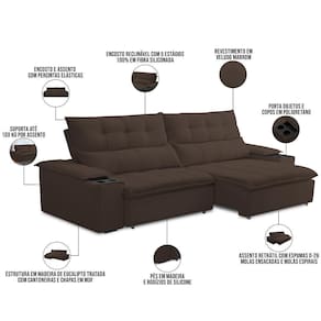 Altura: 110 cm | Color: Marrom | ColorFamily: Marrom | ColorSimple: Marrom | ColorSupplier: Marrom | Cor: Marrom | Cor dos pés: -1 | Densidade da espuma do assento: D-26 | Desenho do tecido: Liso | Estilo: Moderno | Fabricante: Lyam Decor | Formato do sofá: Linear | Largura: 250 cm | Linha: Sala de Estar, Living | Material: Madeira de lei (Eucalipto) devidamente tratada e aparelhada com reforços e cantoneiras e chapas em M | Material de enchimento do encosto: 100% em fibra siliconada. | Material do estofamento: Veludo | MaterialFamily: Tecido, Madeira | Mecanismo de abertura do produto: -1 | Model: Ártico | Orientação do Sofá: -1 | OriginCountry: Nacional | OriginState: PR | Peso: 80 Kg | Peso máximo suportado: 100 kg | ProductContents: 01 Sofá | ProductHeight: 250 cm | ProductInstructions: Produto para uso em ambiente interno, nao devendo ficar exposto ao sol, calor e umidade excessivos. | ProductLength: 98 cm | ProductWarranty: 90 dias após o recebimento do produto | ProductWeight: 80 kg | ProductWidth: 110 cm | Profundidade: 98 cm | Quantidade de Caixas de embalagem: 1 | Requer montagem: Não | SizeDescription: Altura: 110 cm x Largura: 250 cm x Profundidade: 95 cm | SupplierSimpleName: Sofá Retrátil Reclinável Para Sala de Estar Living 250cm Ártico F04 Veludo Marrom - Lyam Decor | Tipo de produto: Sofá | Unidades por kit: 1